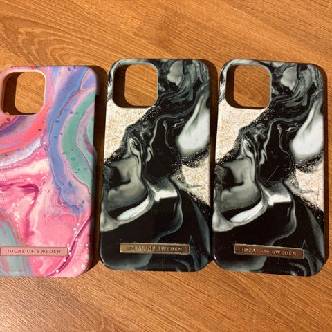 Selger 3 stk mobildeksler fra Ideal of Sweden som passer til iPhone 12 og 12 Pro.