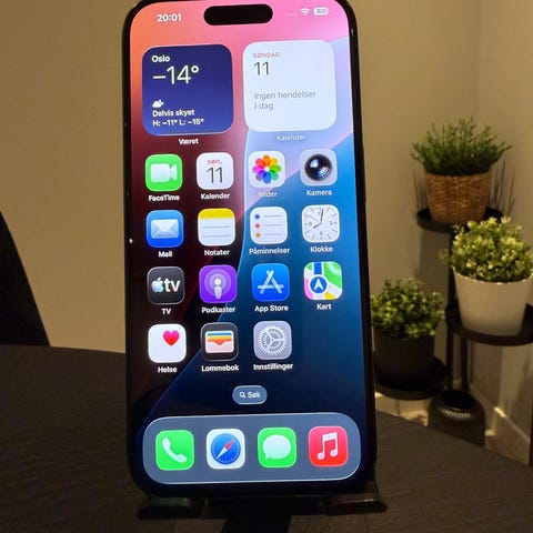 Apple iPhone 15 Pro mobiltelefon med 128 GB lagringskapasitet i svart farge, 89% batterikapasitet.