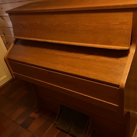 Pumpeorgel gis bort ved henting. Merke Einar Kaland Bergen.
