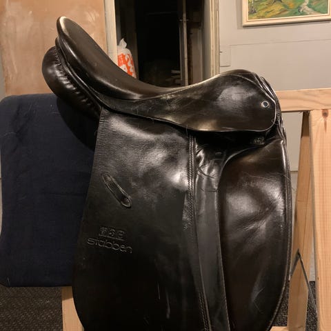 Salen er i god stand og har ingen skader – kun én kosmetisk knapp som mangler ved stigbøylefestet. Dette har ingen betydning for bruk eller sikkerhet.