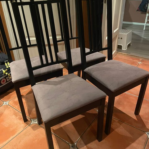 Ikea kjøkken stoler selges 100kr pr stykk, de har bruksmerker på sete og bør trekkes om. Det er kjempe gode stoler å sitte på. Det er enkelt å skru av sitteplaten slik at man kan legge nytt trekk på. Selges pga plass mangel i nytt hus.