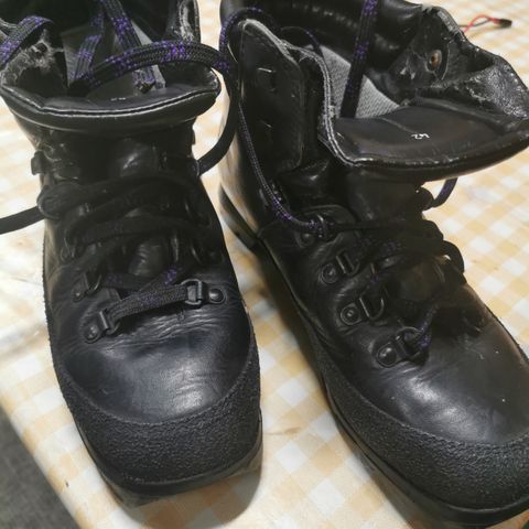 Fine fjellstøvler i skinn, til bc-binding. Merke crispi. Kun brukt noen få ganger, men de passer dessverre ikke til mine brede føtter.
