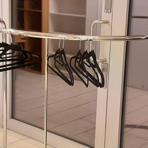 Klesstativ i metall med rund base. Justerbar høyde for fleksibel bruk. Passer til oppheng av klær i hjem, butikk eller lager. Farge svart. 100kr per stk. Totalt 6stk.