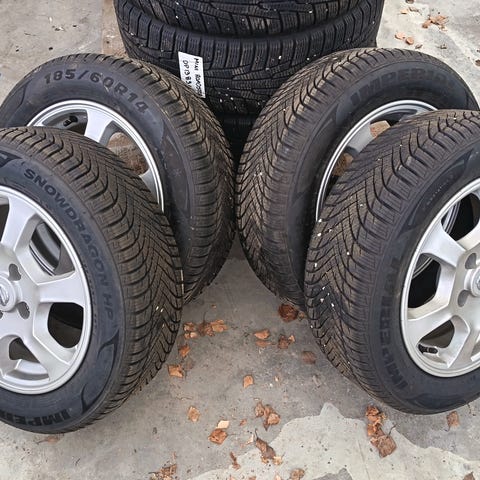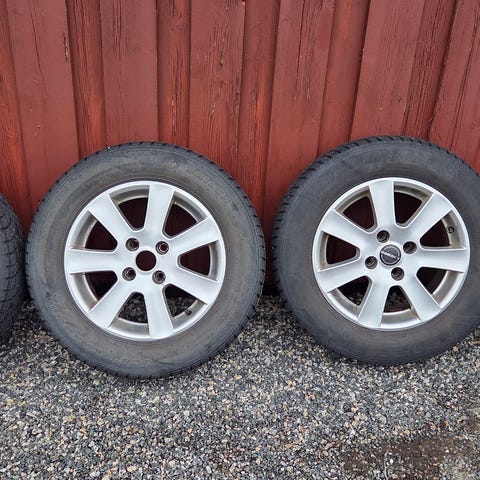 Nye dekk kjøpt høsten 2025 selges komplette på godt brukte felger. Se bilder for spesifikasjon på dekkene.