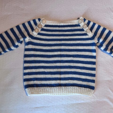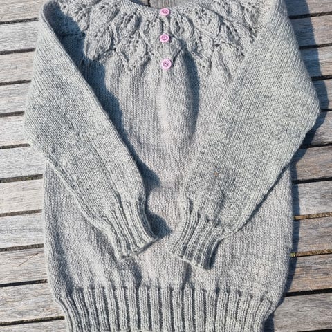Nydelig Dahlia strikkegenser. Strikket i Fivel, Rauma garn. Str 6 år.