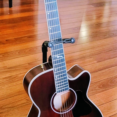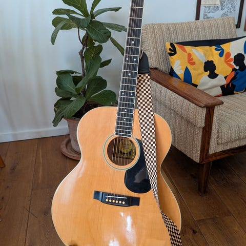 Denne kan brukes elektrisk også - men har veldig fin lyd uten. Gitaren er noen år gammel men er virkelig tatt vare på. Den er oppbevart riktig og oljet med jevne mellomrom.