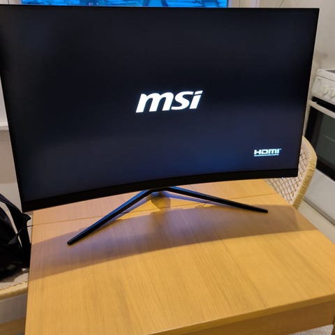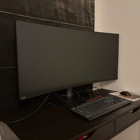 Skjermen har 3440x1440 oppløsning og har 60hz frekvens.