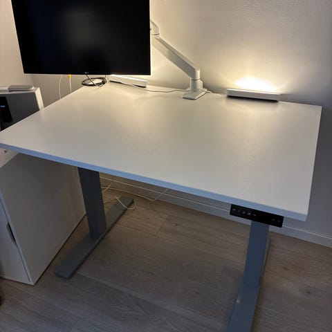Skrivebordet er lite brukt, men har små merker etter feste av skjermarm. Ellers god som ny.