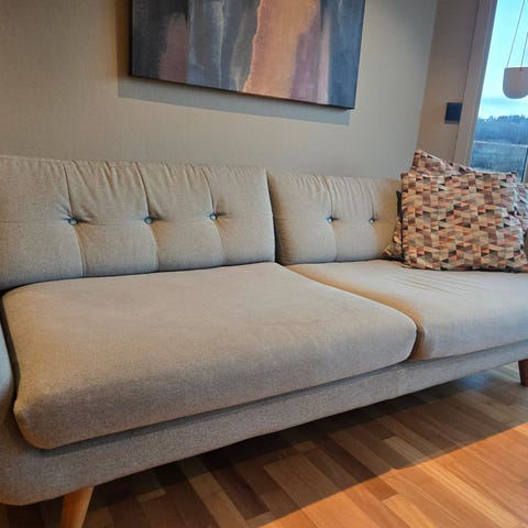 2,5 seters sofa fra furninova selges. Ene ryggputa er ødelagt på undersiden da hunden vår reiv den opp for noen år siden. Vises nesten ikke når puta ligger riktig. Ny pute/trekk kan sikkert bestilles om man ønsker.