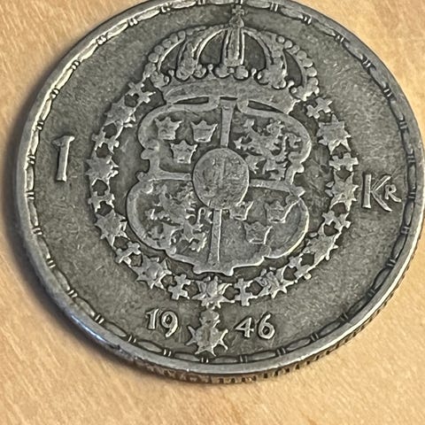 Sverige 1 krone sølv mynt fra årene 1946,1949 og 1955. Myntene har kongelige motiver med portretter av kong Gustav V og kong Gustaf VI Adolf. Materiale og størrelse er ikke spesifisert.