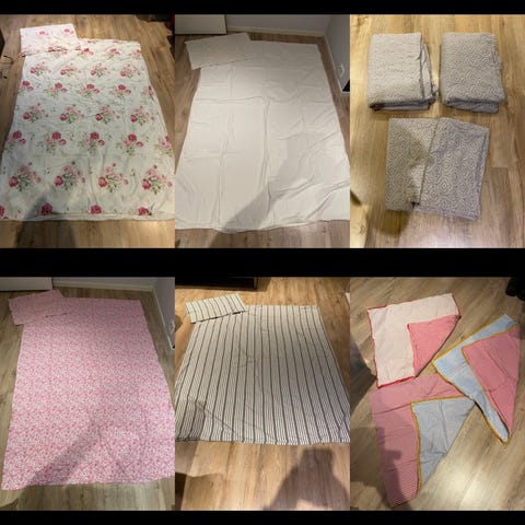 Sengetøy med mønster i rosa, hvitt, sort og grått fra IKEA.