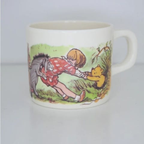 Pent brukte asjetter og kopp m. skål, har 12stk. Mugga er mindre brukt.