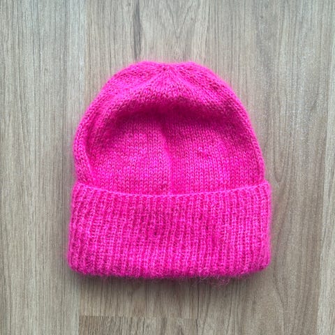 Ny håndstrikket beanie i Sandnes garn silk mohair