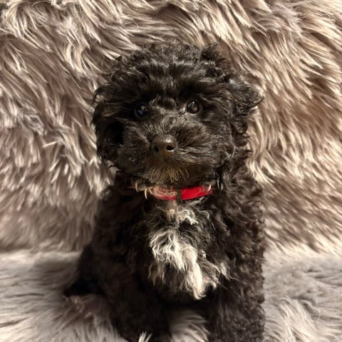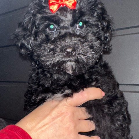 Emmeli på 2 år er ei skjønn blandingstispe. Hun er 60% Bichon Frisé, resterende prosent er Malteser, tibetansk spaniel, cavalier, dvergpuddel og shiz zue.