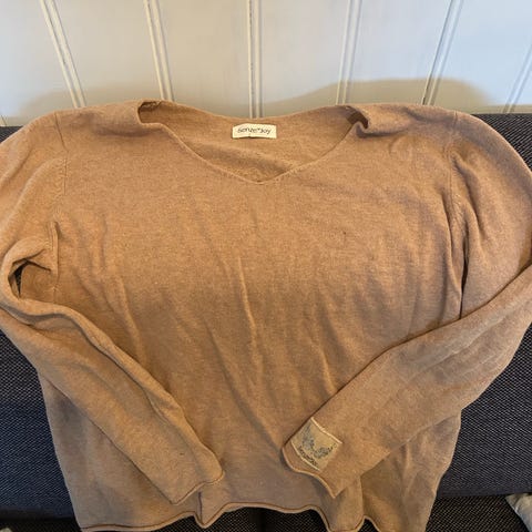 Pierre Robert Genser i merinoull, størrelse L, farge brun. Genseren er laget av 55% merinoull og 45% tencel.