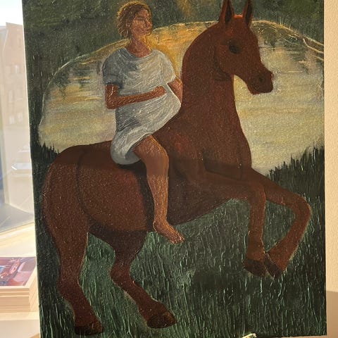 Maleri av kvinne på hest i abstrakt stil
