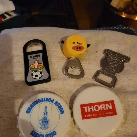 Flaskeåpnere med øl - reklame, 30-60 kr.