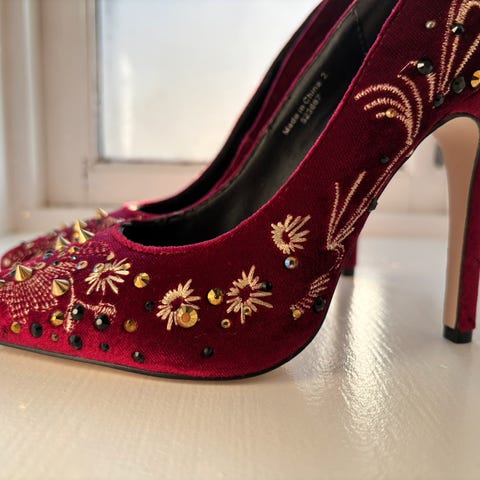 ASOS Hæler i størrelse 6,5 eller 39,5. Rosa farge med en blank, glitrende overflate. Blokhæl.