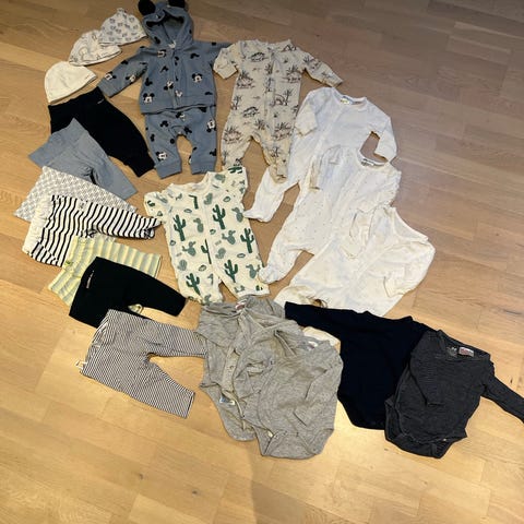 Selger en fin liten klespakke. Str 62 i alt uteom en pysj i 56. Den er stor og passer til en størrelse 62.