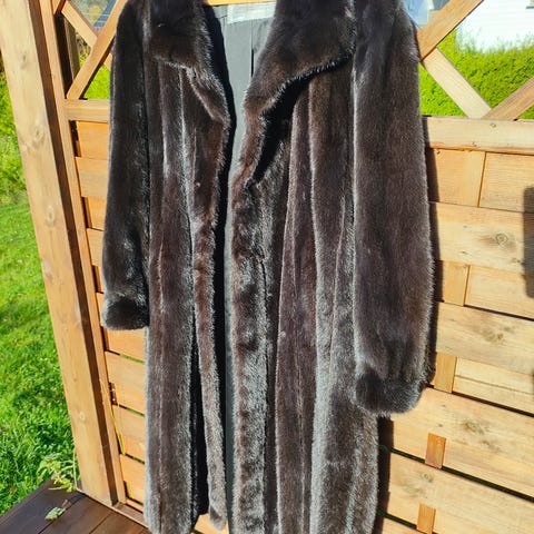 En klassisk og elegant minkpelskåpe fra Pelshuset Drammen, i svært god stand. Dette er en tidløs kvalitetskåpe i ekte mink, med tett, myk og blank pels som har vært pent oppbevart (tørt, mørkt og kjølig).