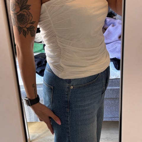 Tubetopp i 100% silke i rosa farge fra Max Mara str 36. Vil si at den passer best til de som bruker XS og 75B i BH-cup eller mindre.