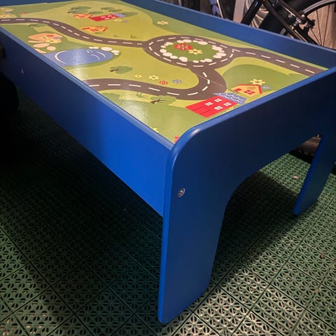 Togbane bord med oppbevaring selges. Vi har ikke alt tilbehøret som vist på de to første bildene. Men det som følger med ser du på bilde nr 3. Passer sammen med Brio.