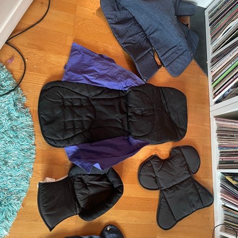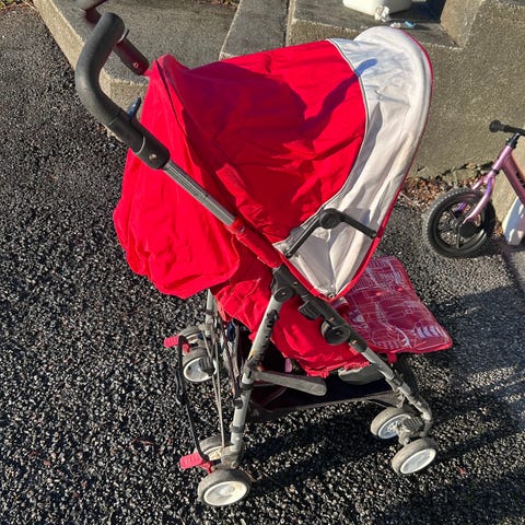 Gies bort deler til en babyjogger city elite vogn. Selve chassis og hjulene er ødelagt men sete, solskjerming og baggasje del er synlig brukt men ha mye bruk igjen