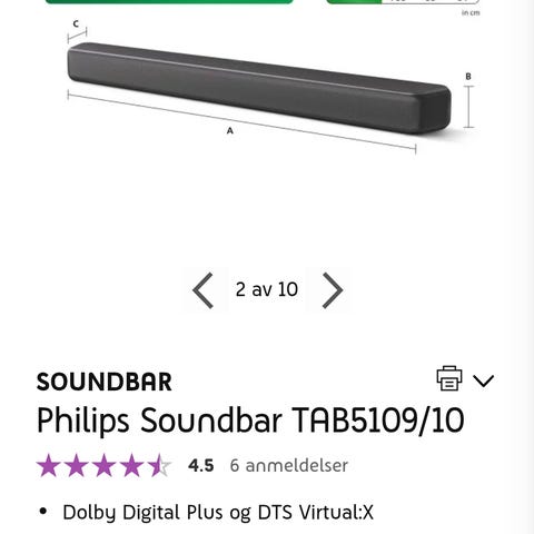 Philips lydplanke i svart farge. Produktet er designet for å forbedre lydopplevelsen ved tilkobling til TV eller annet lydutstyr.