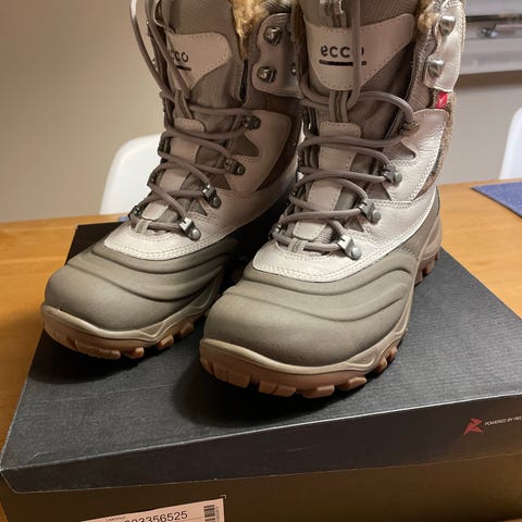 ECCO Vinterstøvler i størrelse 39, svart farge. Støvlene er laget for vinterbruk med isolerende materiale og robust såle for godt grep på vinterføre. Brukt en gang. Var for liten til meg