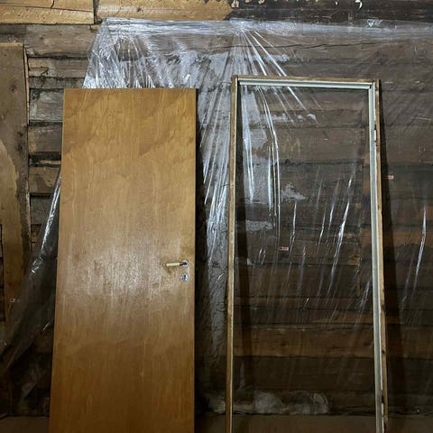 Dør 2 med frostet glassfelt. Bredde 72 cm, høyde 198cm