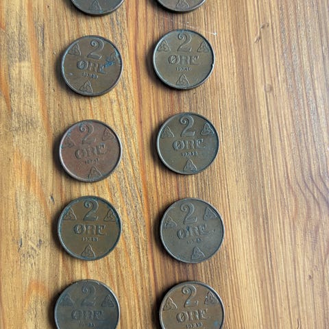 Norske 2 øre mynter fra 1935og tidligere. Gi bud
