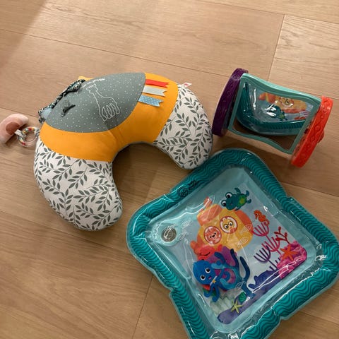 Gjør din lille begeistret for magetrening med kule Croco! - Pute for magetrening bidrar til å styrke babyens nakke og rygg. - Mange sensoriske funksjoner for å oppmuntre babyen din til å ha lengre og mer aktiv magetrening. - Biteringer lindrer kløende gommer. - Forskjellige teksturer og strukturer for å stimulere barnets sanser og nysgjerrighet. - Lite babyspeil og knitrende tekstiler i tillegg Crocos dirrende mage, gir barnet mange aktiviteter å utforske. - Anbefalt alder: 0+ mnd. Spesifikasjoner: - Mål: 48 x 18 x 10 cm. - Tørkes av med lett fuktig klut. Kan ikke hånd- eller maskinvaskes. - Materiale: - Leker: Tekstiler 50% bomull, 50% polyester. Fyll: 100% polyesterfibre. -