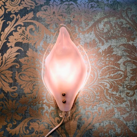Stilig retro, avlangt sett med to glasskupler. Fire felt, klart glass i midten, hvitt i topp/bunn. Passer til dobbel lampett eller lysekrone, eller som supplement for noe som er knust.