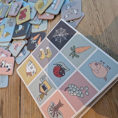 Tactic Picture Lotto brettspill med 108 bilder. Spillet inneholder ulike illustrasjoner og er designet for barn. Passer til bruk i familie- og barneaktiviteter.