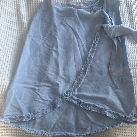 HÉST Frida skjørt i blå farge, laget av 60% viskose og 40% bomull. Størrelse M. Skjørtet har et mønster med bokstaven H og er designet for kvinner.