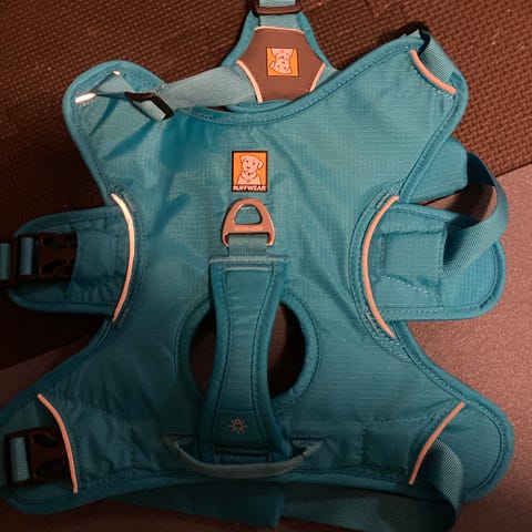 Halsbånd og sele. Kjøpt på Musti. Fin og behagelig sele. Halsbånd i str 30-40 cm. Sele chest 50-60 cm.
