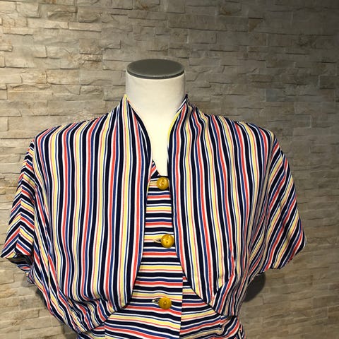 Hjemmelaget ser det ut som. Nydelig stoff. Ca 36-38. Kan passe 38 om man har små bryster.