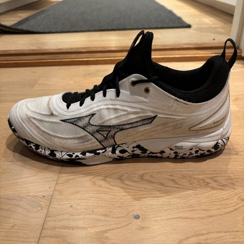 Helt ubrukte 'Mizuno Wave Momentum 3(U)'. Selges fordi de ble kjøpt med feil størrelse. Ble pakket inn som julegave med avrevet produkt-tag, så byttegarantien gjaldt ikke lenger.