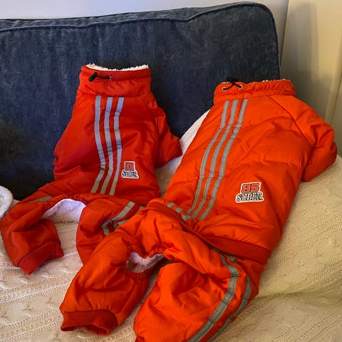Deilig hundedekken i teddy med rutete brunt mønster. Kjøpt på Musti. Str 40