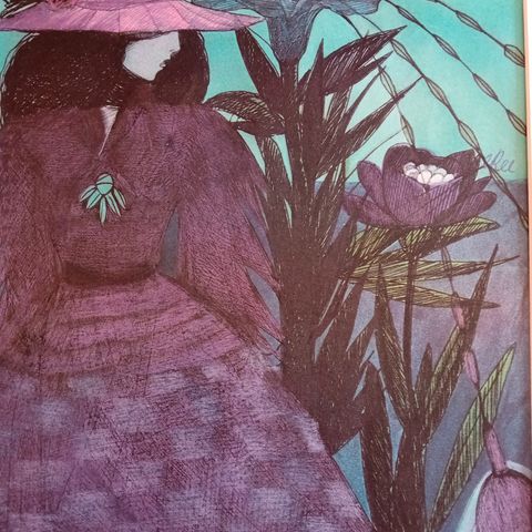 Selger en liten samling håndmalte dekorative egg i tre, i ulike størrelser og uttrykk. Motivene er inspirert av religiøs ikonografi og klassisk folkekunst, malt i varme farger med bladgull-/gulltoner.
