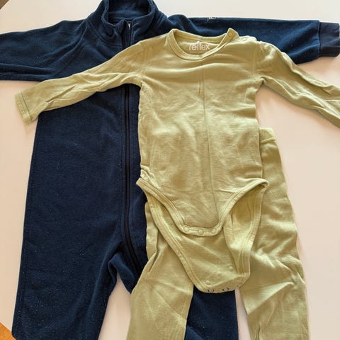 Pent brukt ull i str. 56. En dress/pysj fra Lindex og ett sett fra Devold.