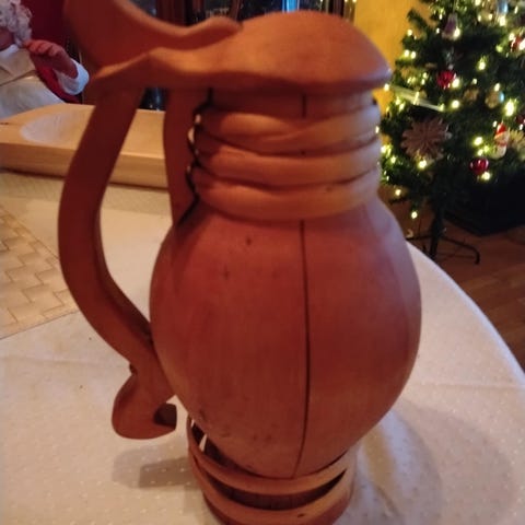 Håndlaget trekanne i god stand, som ny - neppe vært i bruk til annet enn pynt.
