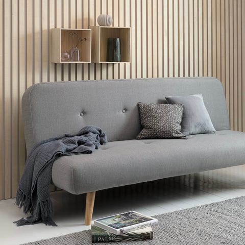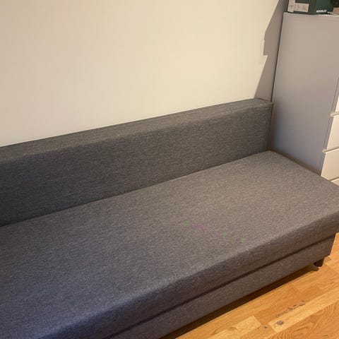 3-seters sofa med fløyelstrekk. Sofaen omgjøres enkelt til seng. Sete- og ryggputer i skum. Ben i massivt tre. Liggemål 116x192 cm. B192 x H89 x D92 cm