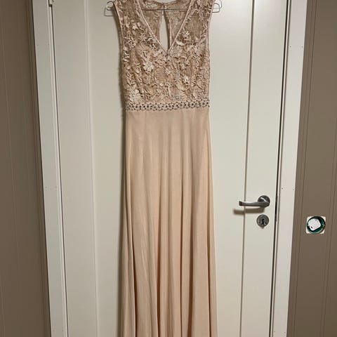 Denne kjolen ble kjøpt fir å bruke i bryllup. Men valgte en annen. Helt ny med lappen på. Sitter fint i snittet. Passe M og L