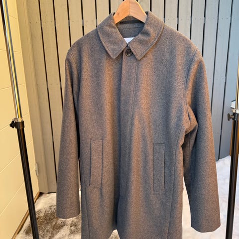 Lekker herrefrakk beregnet for mellomsesong vår og høst fra Samsøe Samsøe i størrelse S. Frakken er olivengrønn i fargen, noe vanskelig å få gjengitt perfekt på bilder. Men fin er fargen i alle fall!