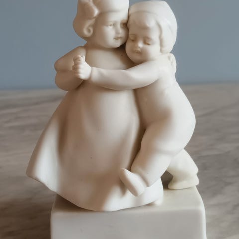 Hummel Figur Boy Playing Flute i keramikk. Figuren viser en gutt som spiller fløyte, kledd i brune og grå klær med hatt. Passer som dekorativ gjenstand.