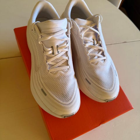 Nike Vomero Plus løpesko i størrelse 45 1/2, med gul og oransje farge. Skoene er designet for løping og har ZoomX demping for bedre ytelse🧡