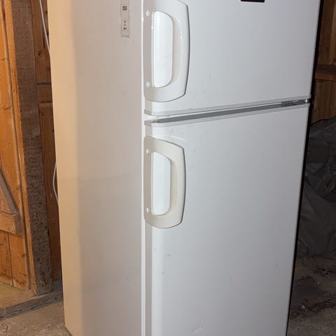 Electrolux kombiskap i hvit farge. Kjøleskap og fryser i ett apparat. Håndtakene er knekt, men de er strengt tatt ikke nødvendige. Fungerer eller som det skal. Stillegående og solid. 140 cm høyt, selges grunnet overgang til større kjøleskap. Passer nok bra på hybel eller på hytta.
