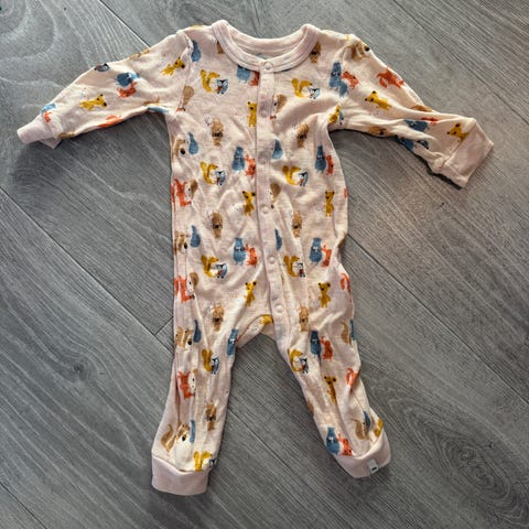 • Dress med hette (str. 50/56): Denne er kun brukt én gang, fra sykehuset og hjem. Fremstår som ny.