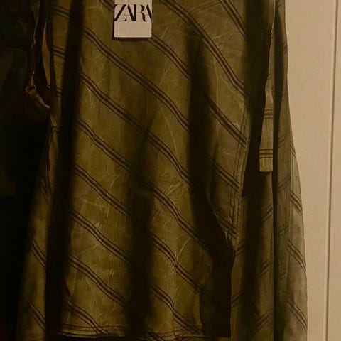 Selger et helt ubrukt kjørt med omslag fra Zara i strl L. Lappen er på. I mørkegrå med tynne lyse striper.🌟